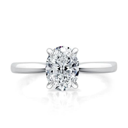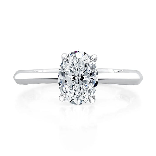 A.Jaffe Hidden Halo Oval Cut Diamond Solitaire Engagement Ring with Quilted Interior