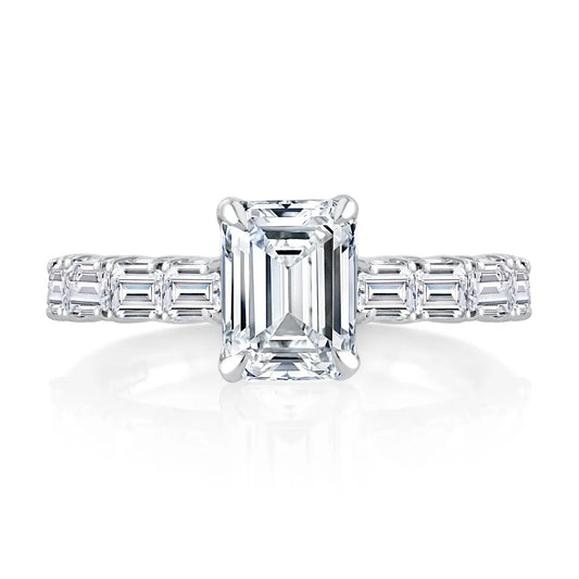 A.Jaffe Emerald Cut Diamond Engagement Ring with East West Emerald Diamond Accents Band