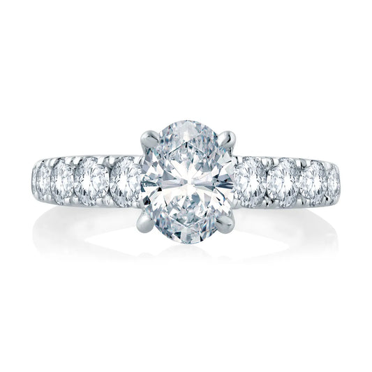A.Jaffe Large Melee Round Center Solitaire Signature Shank Engagement Ring