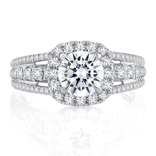 A.Jaffe Triple Split Shank Halo Round Cut Diamond Engagement Ring