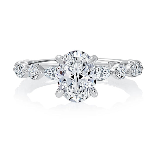 A.Jaffe Four Prong Oval Center Diamond Engagement Ring