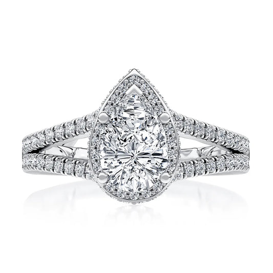 A.Jaffe Pear Shaped Halo Diamond Engagement Ring