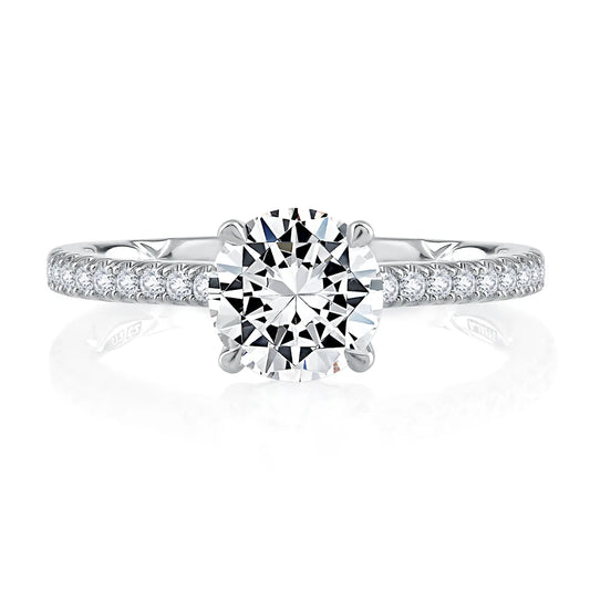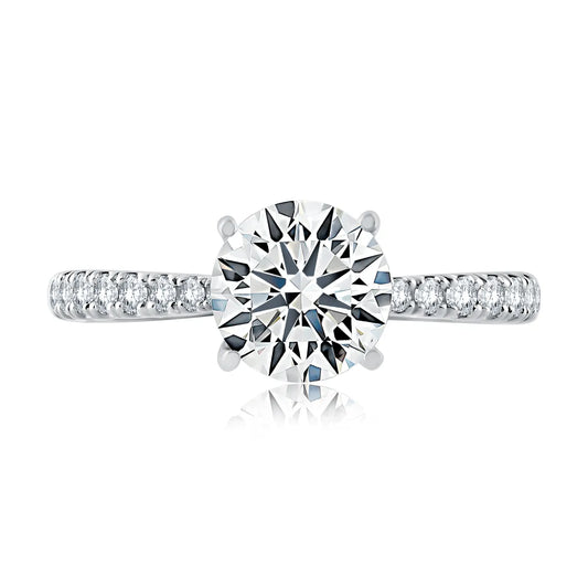 A.Jaffe Classic Round Center Diamond Engagement Ring with a Round Shaped Hidden Diamond Halo