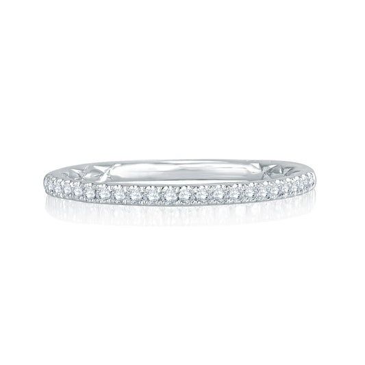 A.Jaffe Delicate Diamond Pave Wedding Band with a Quilted Interior