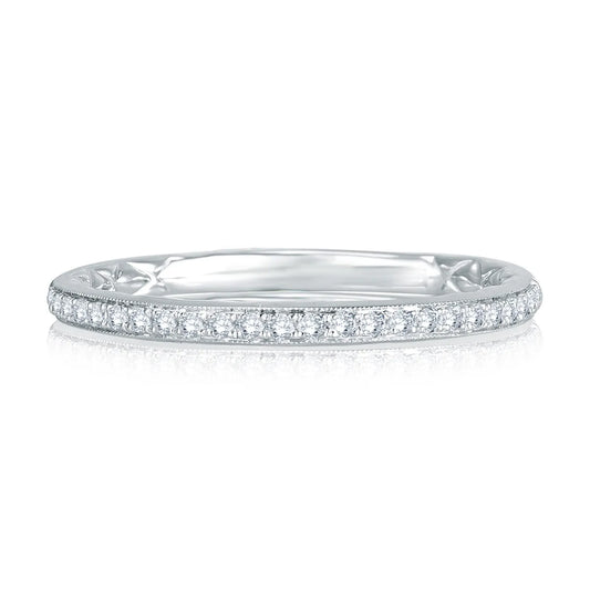 A.Jaffe Delicate Diamond Pave Wedding Band with a Quilted Interior
