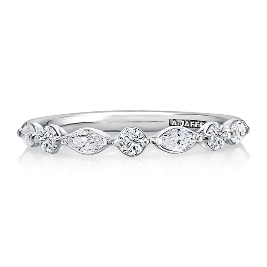 A.Jaffe Delicate Halfway Alternating Round and Marquise Diamond Wedding Band