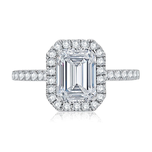 A.Jaffe Emerald Cut Diamond Halo Engagement Ring with Quilted Interior