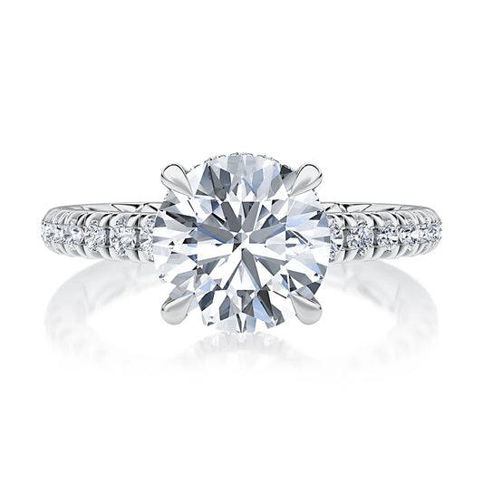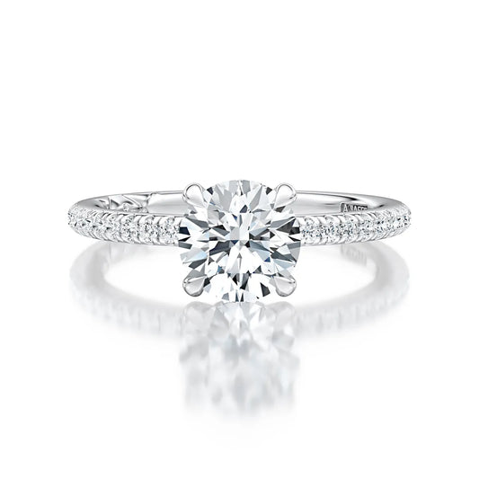 A.Jaffe Four Prong Round Center Diamond Center Engagement Ring with Pave Band
