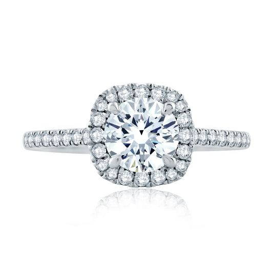 A.Jaffe Intricate Milgrain Accent Gallery Detail Round Center with Cushion Shaped Halo Engagement Ring