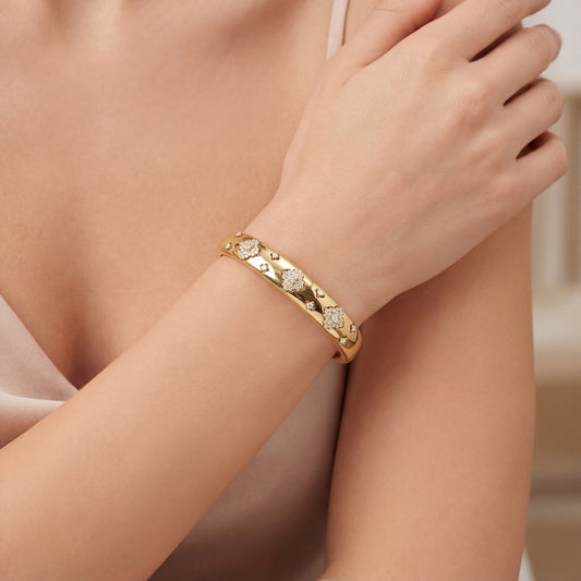 Tennis bracelets remain a classic favorite due to their elegance and versatility. Delicate chain bracelets, charm bracelets, and gold cuffs are also popular choices that suit both casual and formal outfits.