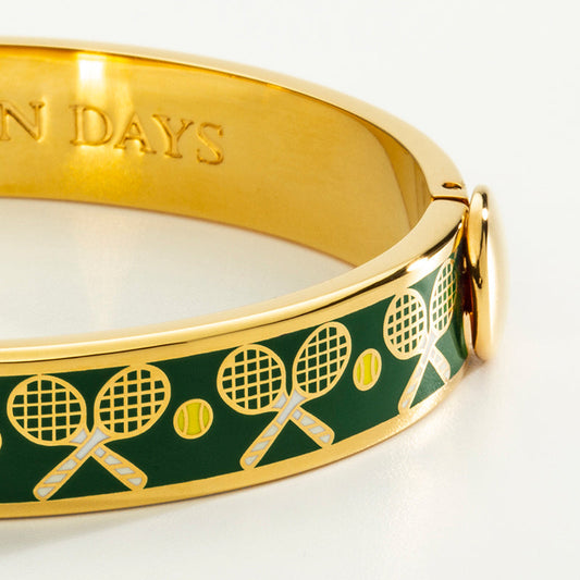 Halcyon Days Tennis Racket & Ball Bangle Green