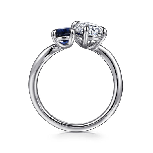 Gabriel & Co. 14K White Gold Toi et Moi Oval Sapphire and Diamond Engagement Ring