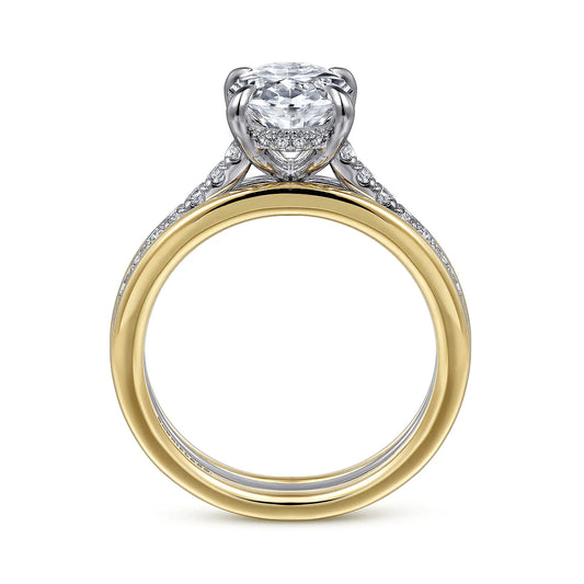 Gabriel & Co. 14K Yellow-White Gold Wide Band Oval Diamond Engagement Ring