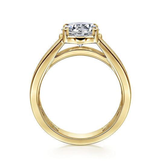 Gabriel & Co. 14K Yellow Gold Wide Band Round Diamond Engagement Ring