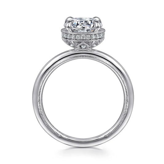 Gabriel & Co. 14K White Gold Floral Round Diamond Engagement Ring