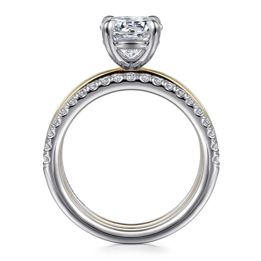 Gabriel & Co. 14K Yellow-White Gold Wide Band Round Diamond Engagement Ring