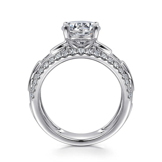Gabriel & Co. 14K White Gold Wide Band Round Diamond Engagement Ring