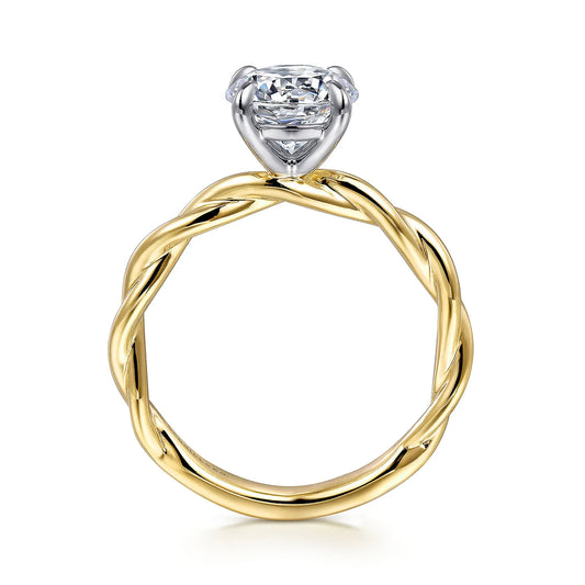 Gabriel & Co. 14K White-Yellow Gold Twisted Round Diamond Engagement Ring