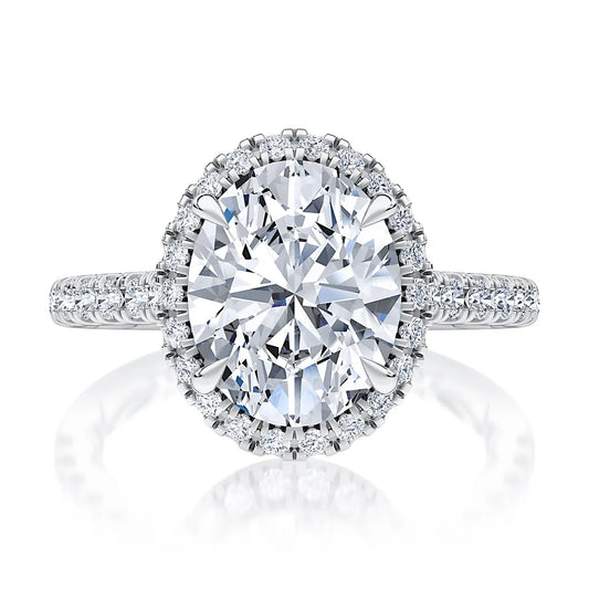 A.Jaffe Oval Cut Diamond Engagement Ring with Oval Shaped Halo and Diamond Pave Band