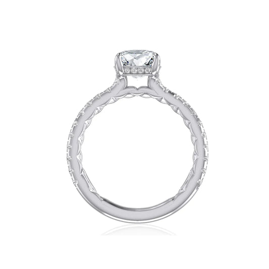 A.Jaffe Peek-A-Boo Pave Profile Cushion Center Diamond Quilted Engagement Ring