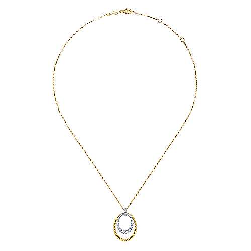 Gabriel & Co. Fashion 14k Gold Oval Twisted Rope and Pavé Diamond Pendant Necklace