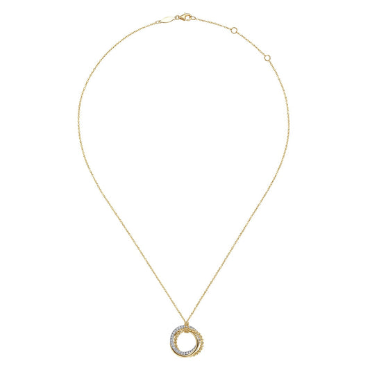 Gabriel & Co. Fashion 14k Yellow-White Gold Bujukan Diamond Interlocking Circles Pendant Necklace