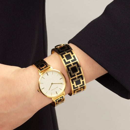 Halcyon Days Parterre Black Cream & Gold Bangle