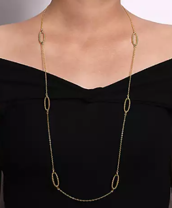 Gabriel & Co. Fashion 14k Yellow Gold Bujukan Bead Oval Station Necklace