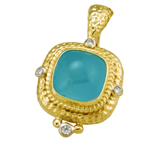 Raymond Mazza 14k Yellow Gold Aquamarine Cabochon & Diamond Pendant