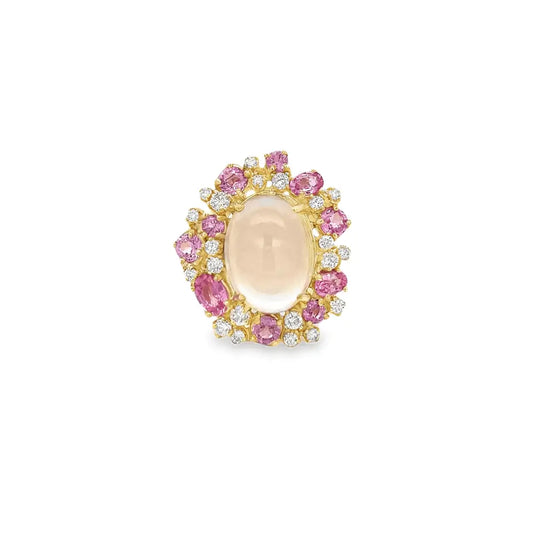 Raymond Mazza 14k Yellow Gold Pink Cluster Rose Quartz & Pink Sapphire with Diamond Ring