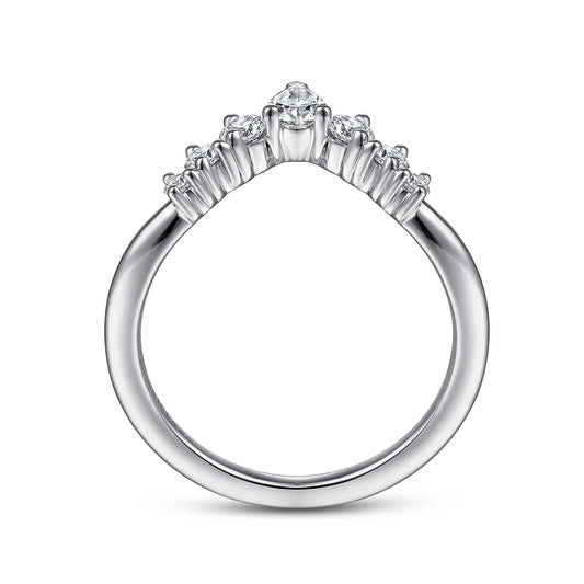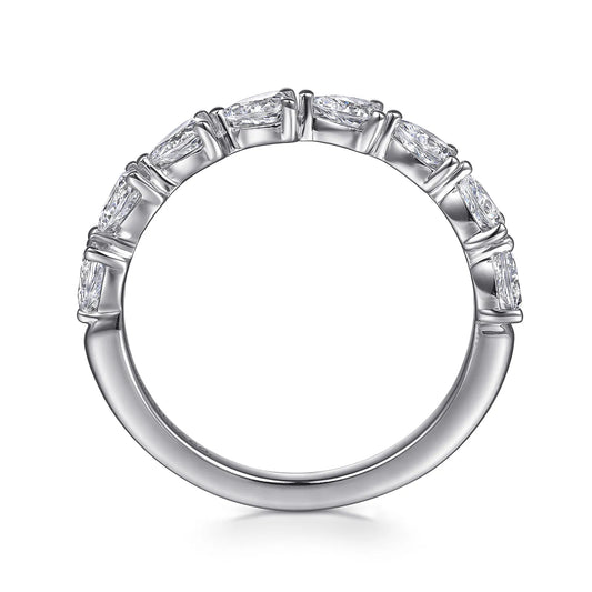 Gabriel & Co. 14K White Gold Curved Pear Shape and Round Diamond Anniversary Band