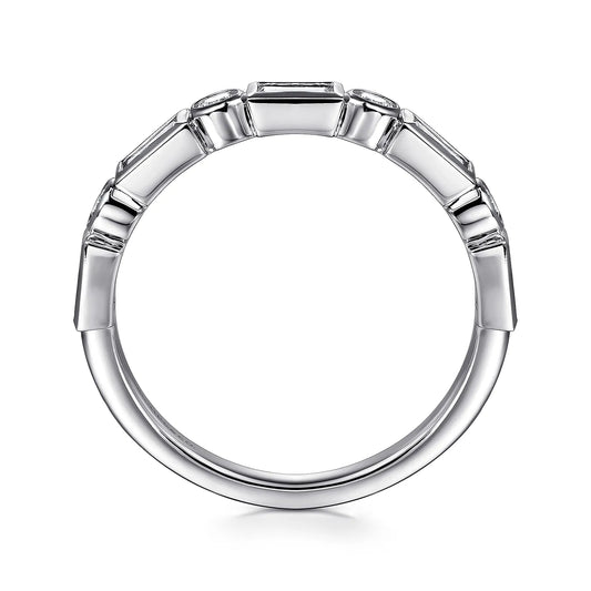 Gabriel & Co. 14K White Gold Bezel Set Baguette and Round Diamond Anniversary Band