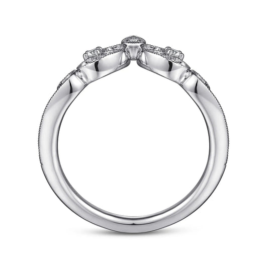 Gabriel & Co. 14K White Gold Curved Filigree Diamond Ring