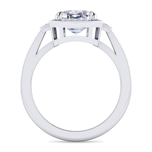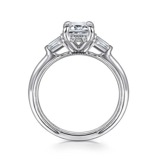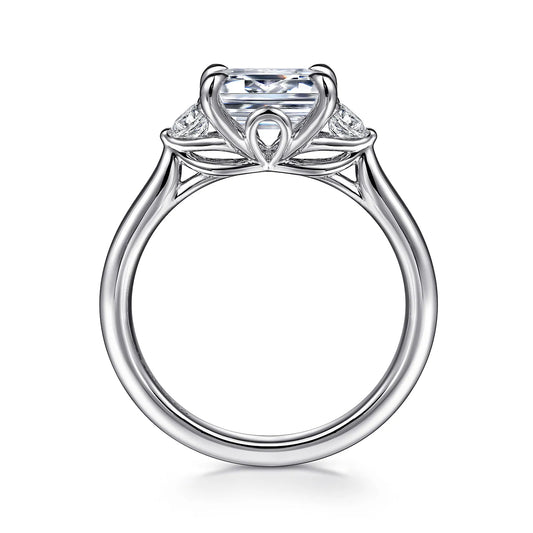 Gabriel & Co. 14K White Gold Emerald Cut Three Stone Lotus Diamond Engagement Ring