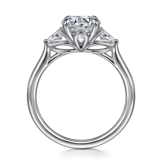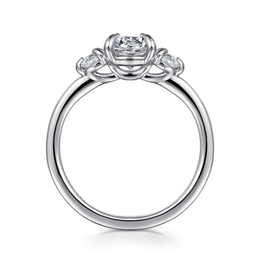 Gabriel & Co. 14K White Gold Three Stone Round Lotus Diamond Engagement Ring
