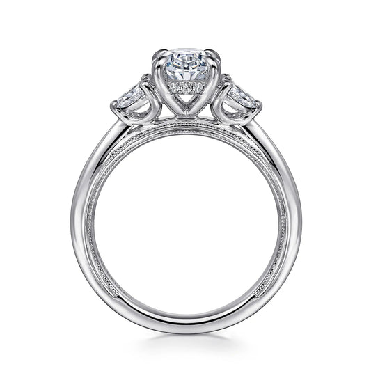 Gabriel & Co. 14K White Gold Oval Three Stone Diamond Engagement Ring