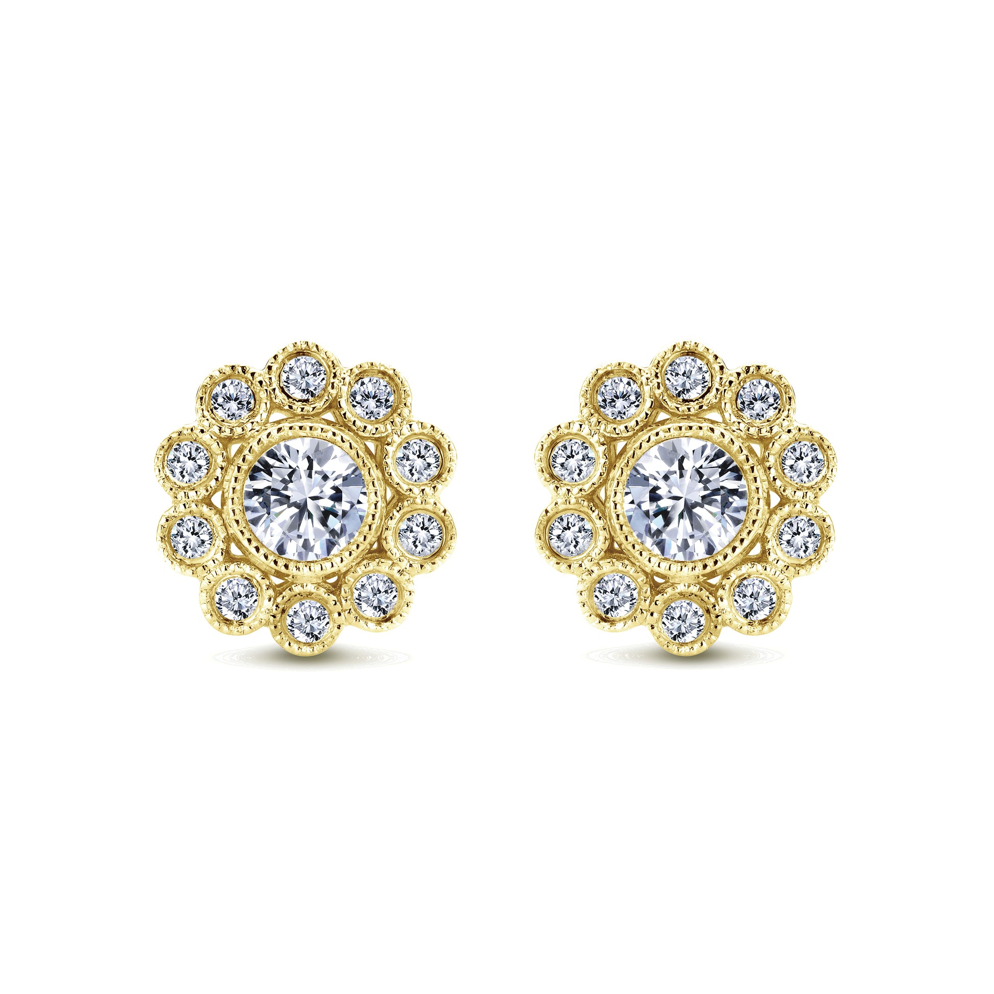 14K Yellow Gold Diamond Flower Stud EarringsRound Diamonds .51cttw