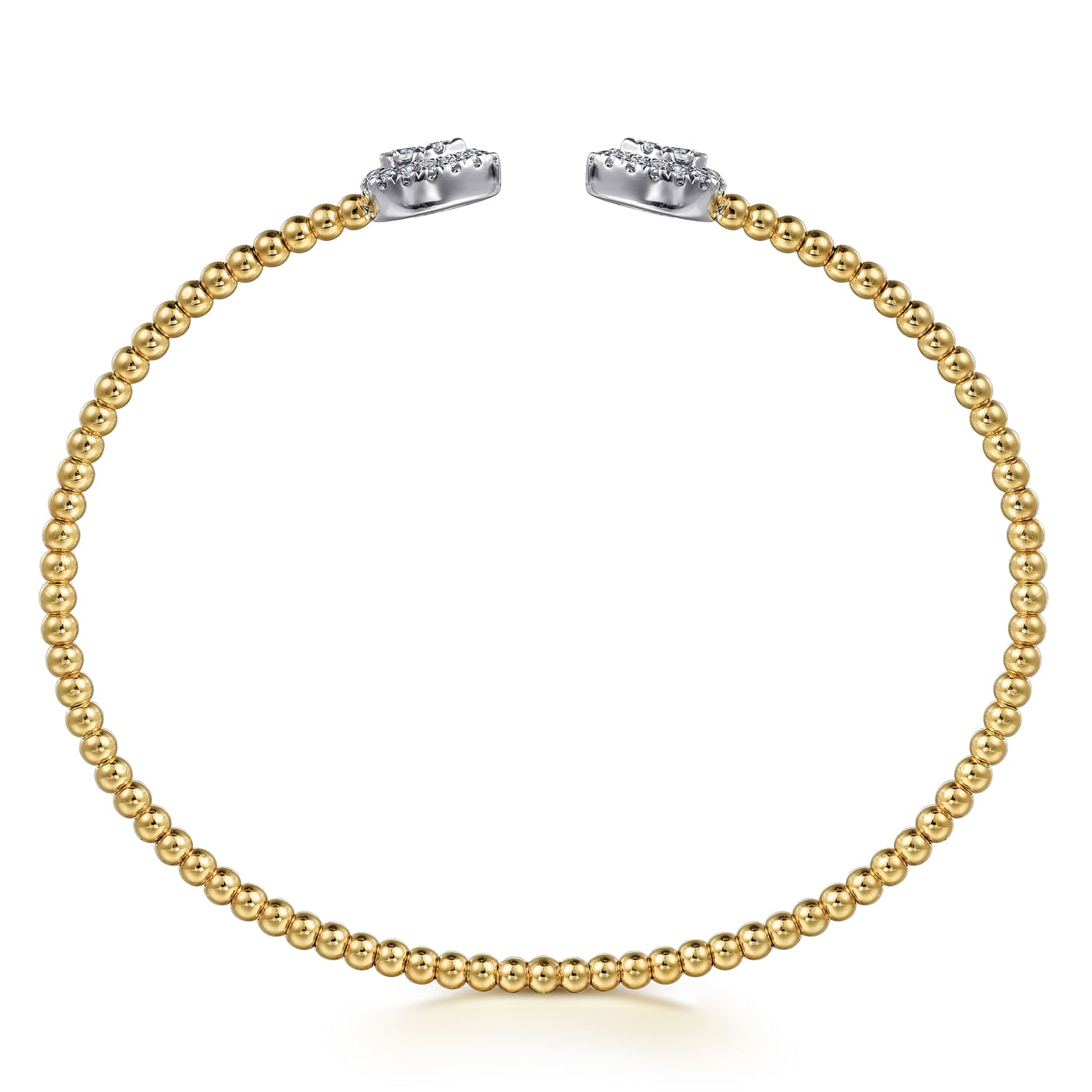 14K White and Yellow Gold Diamond Pear Shape Bujukan Bangle with Pear and Round Diamonds .31cttw