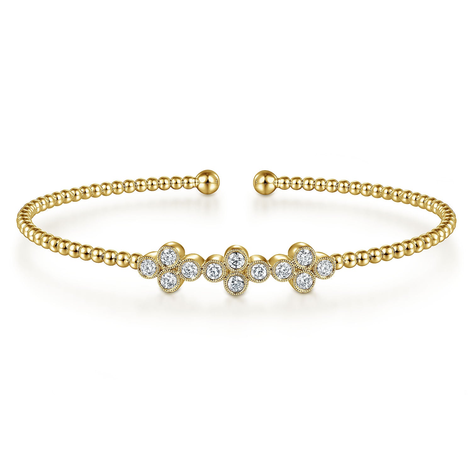 14kt YG Bujukan Bead Cuff Bracelet Size 6.5 w Dias 0.62 cts