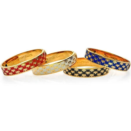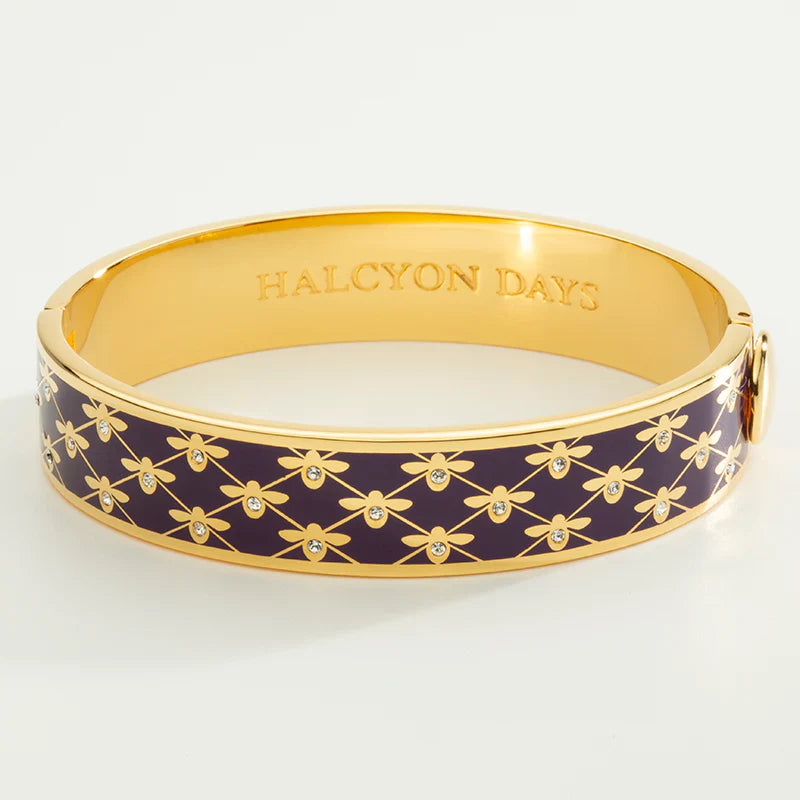 A novel addition to even the most affluent jewelry box, finish off your favorite outfits with the Bee Sparkle Trellis Bangle from Halcyon Days.