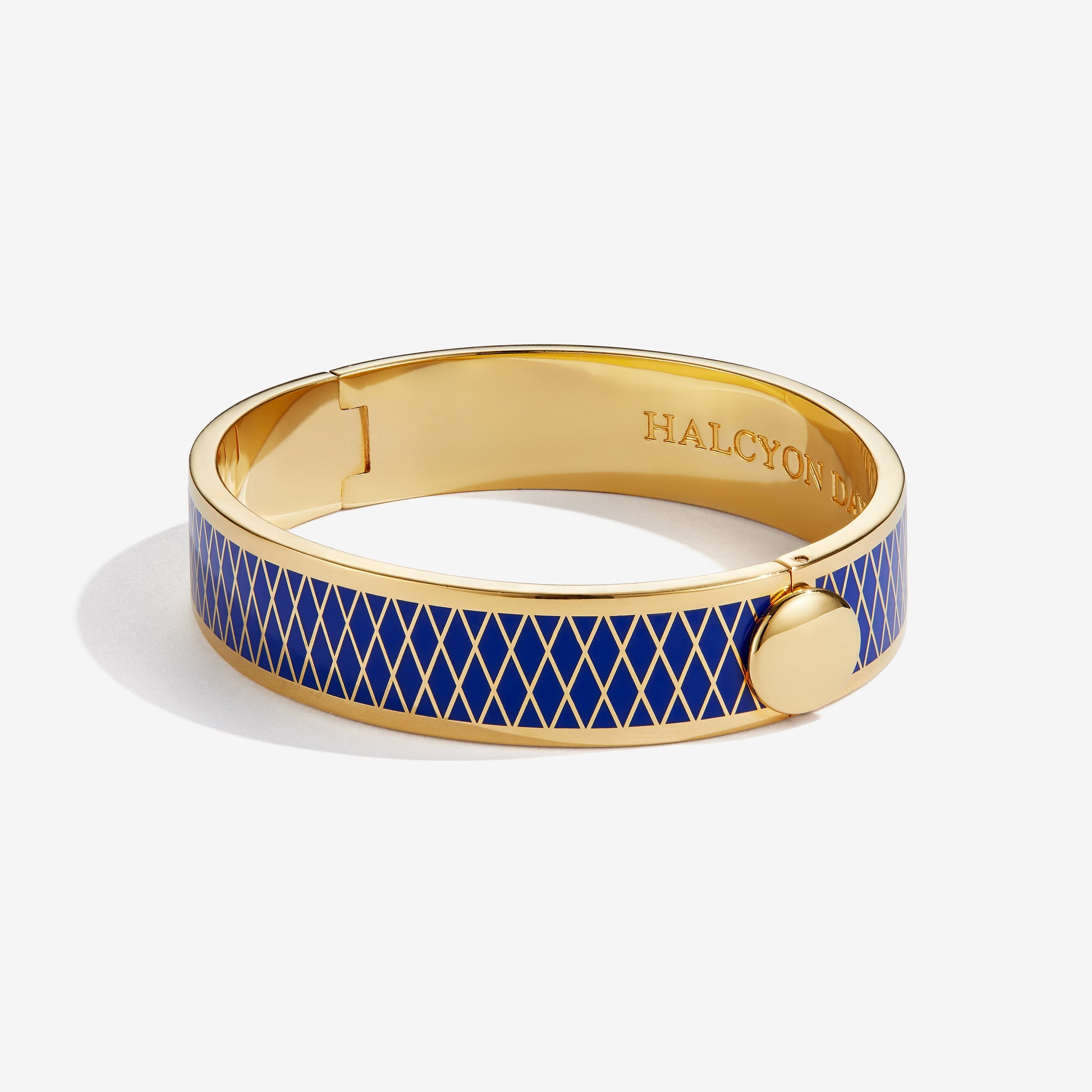 Available in six enamel colors, including cream, black, red, orange, deep cobalt, and turquoise, each Parterre 13mm Hinged Bangle is suited for any occasion. The repeating geometric design of the Parterre on this bangle makes it a modern classic. Wear the black and cream stacked for an elegantly understated look, or select a red, orange or turquoise to add a pop or color to your outfit.