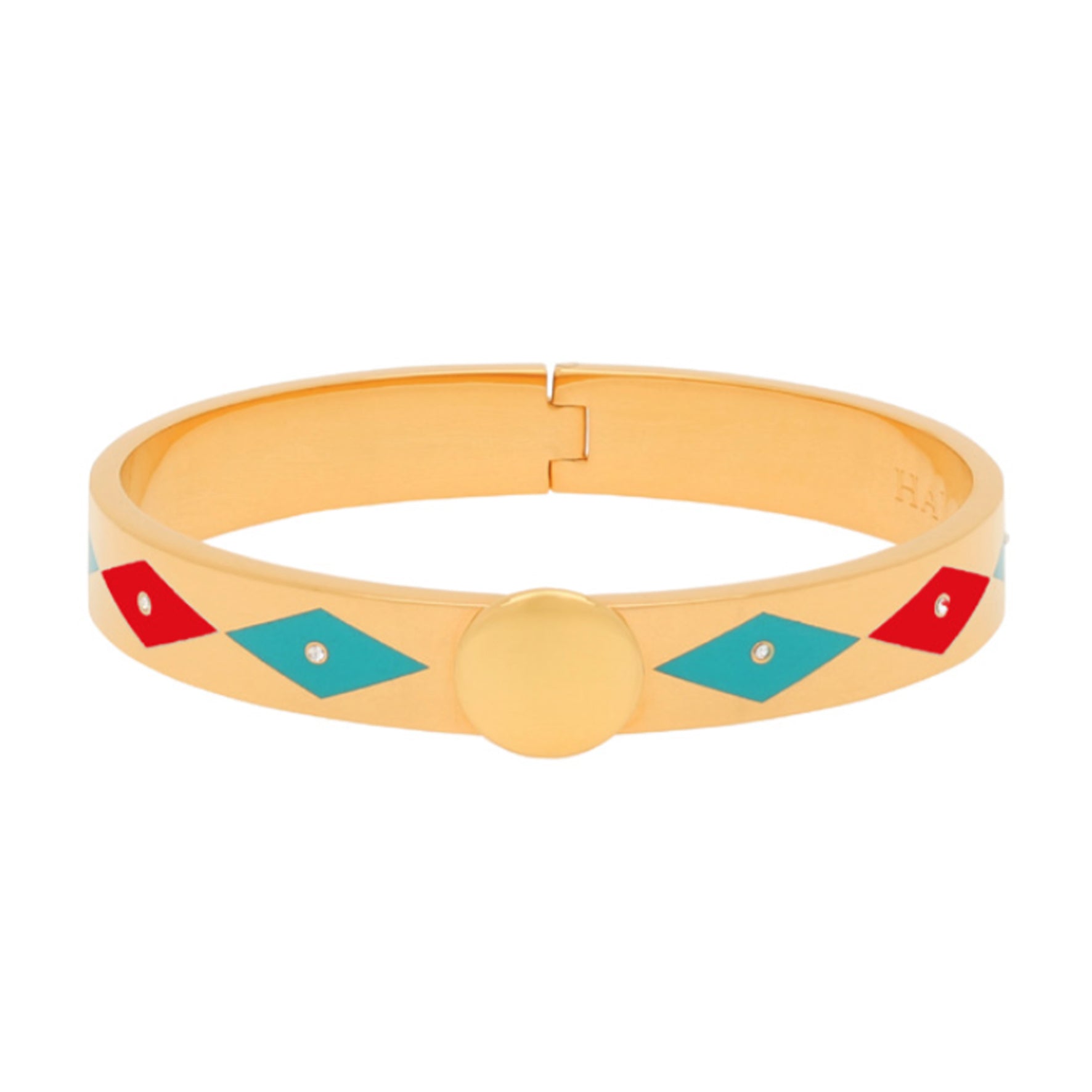 The Sparkle Hinged Bangle in the Parterre pattern is a refined and modern addition to any wardrobe. Measuring 1cm in width, the bangle is available in a variety of color combinations.