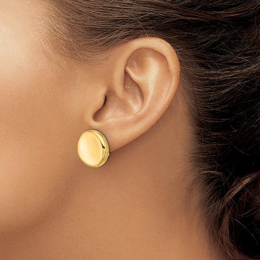 Herco 14k Yellow Gold Round Button Omega Back Earrings