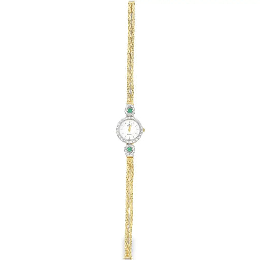 Cyma 14K Yellow Gold Ladies Diamond and Emerald Vintage Watch